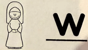 แต่โจทย์ข้อที่สามนี่แหละที่สร้างความงุนงงให้กับทั้งเด็กและผู้ใหญ่หลายคน เพราะภาพที่ให้มานั้นเป็นภาพผู้หญิงยิ้ม ๆ สวมหมวกคลุมศีรษะและชุดยาวพร้อมกับประสานมือไว้ข้างหน้า โดยมีตัวอักษร ‘W’ อยู่ข้าง ๆ ทำให้ชาวเน็ตต่างก็ต้องเกาหัวอย่างงุนงง