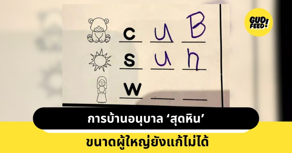 เมื่อ 26 มีนาคม ที่ผ่านมา คุณแม่ท่านหนึ่งได้โพสต์ภาพการบ้านของลูกที่เรียนอยู่ชั้นอนุบาล โดยโจทย์ให้เด็กดูภาพและเขียนคำศัพท์ที่มี 3 ตัวอักษรลงในช่องว่าง