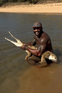 “มันกัดผม แต่ผมก็จับมันไว้ได้!” โฮลสตันประกาศพร้อมหัวเราะ ขณะที่เลือดไหลจากบาดแผลที่แขน “มันกัดแขนผมไปเยอะเลย ดูสิ” เขากล่าวพร้อมกับเสียงครวญครางของจระเข้ “นี่มันสุดยอดไปเลยครับ! นี่คือความฝันของผมเลย ตั้งแต่เด็กผมอยากมาออสเตรเลียเพื่อดูจระเข้ จับพวกมันด้วยมือ และดูพวกมันใกล้ ๆ”
