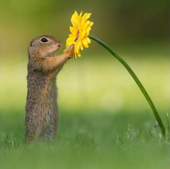 วินาทีมหัศจรรย์เกิดขึ้น เมื่อกระรอกตัวหนึ่งเดินเข้ามาใกล้ดอกเดซี่ ค่อยๆ โน้มตัวลงไป และซุกใบหน้าเล็กๆ เข้าไปในกลีบดอกไม้