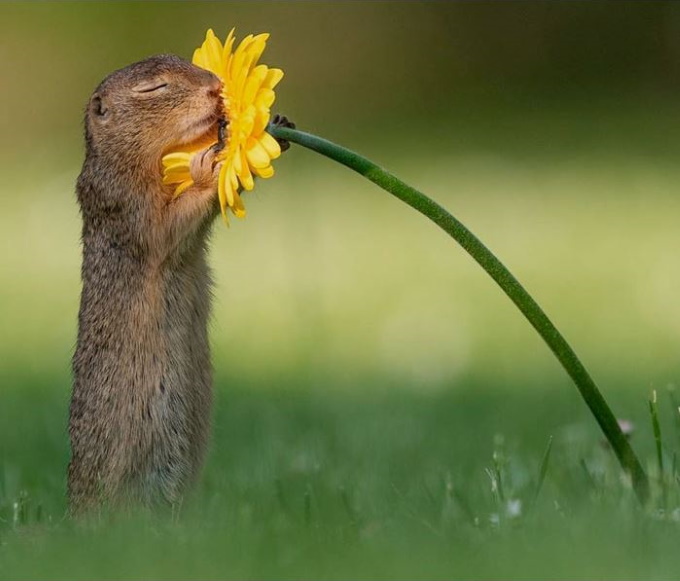 วินาทีมหัศจรรย์เกิดขึ้น เมื่อกระรอกตัวหนึ่งเดินเข้ามาใกล้ดอกเดซี่ ค่อยๆ โน้มตัวลงไป และซุกใบหน้าเล็กๆ เข้าไปในกลีบดอกไม้