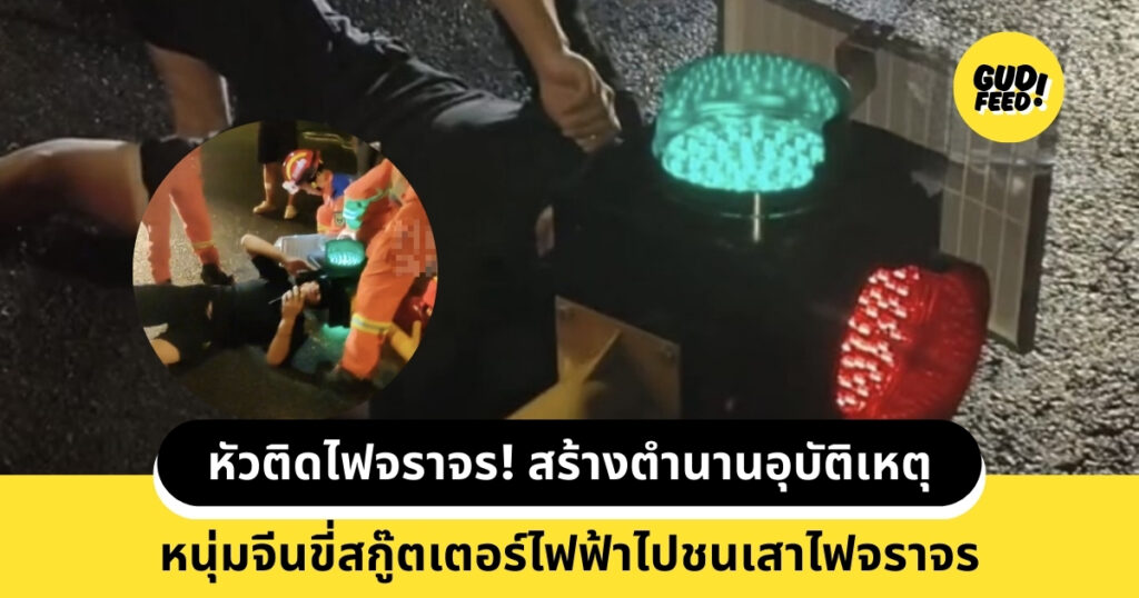 เรื่องราวสุดเหลือเชื่อนี้เกิดขึ้นที่เมืองเฉิงตู ประเทศจีน เมื่อหนุ่มคนหนึ่งขี่สกู๊ตเตอร์ไฟฟ้าไปชนเสาไฟจราจรเข้าอย่างจัง แต่แทนที่จะเป็นแค่รอยบุบธรรมดา หัวของเขากลับติดเข้าไปในช่องว่างของไฟสัญญาณอย่างน่าเหลือเชื่อ