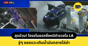 สุดป่วน! โจรขโมยรถซิ่งหนีตำรวจใน LA จู่ๆ แวะเติมน้ำมันกลางไล่ล่า แต่ยังหนีรอด