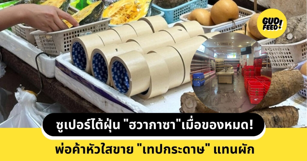 ซูเปอร์ไต้ฝุ่น “ฮวากาซา”เมื่อของหมด! พ่อค้าหัวใสขาย “เทปกระดาษ” แทนผัก